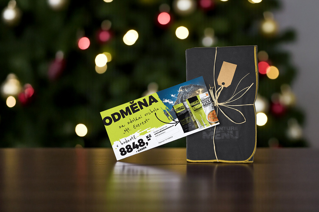 Jestli chceš někomu darovat hory zážitků, který si opravdu vychutná - kdykoli a kdekoli, jednoduše mu naděl pod stromeček Adventure Menu – 100% přírodní, chutný jídlo.