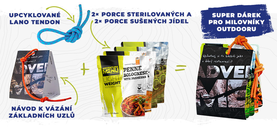 Tenhle balíček nejlépe poslouží dobrodruhům, kteří občas vyrazí na malý výlet do lesa, ale nebojí se ani těžších výzev. Proto jsou tu 2 sterilovaná jídla do snažších podmínek a 2 ultralehká sušená jídla, které si člověk v batohu snadno odnese třeba i za polární kruh. Balení obsahuje mix 4 jídel, které patří mezi největší favority z naší kuchyně: