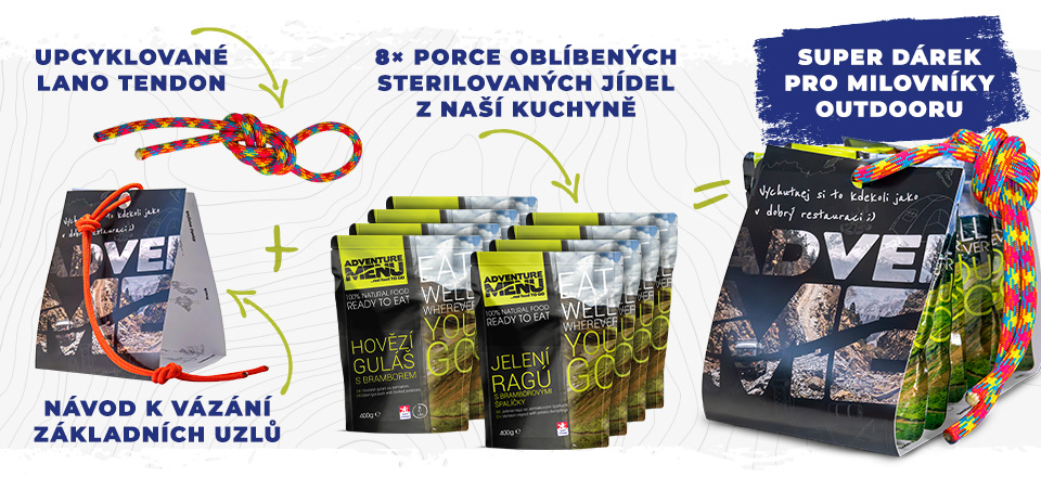 Tenhle balíček je jako ušitý pro jednoho i více dobrodruhů, kteří si i na cestách potrpí na pohodlnost a snadnou přípravu bez nutnosti cokoliv dolévat. Prostě jídlo prohnat naším samoohřevem nebo ho jednoduše vysypat do hrnce či pánve a hned začít jíst. V balení najdeš osm našich sterilovaných jídel, která patří mezi ta úplně nejoblíbenější z naší kuchyně:
